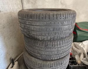 წინა R19 255/55 უკანა R19 275/50 ზაფხული არის კარგ მდგომარეობაში, ერთი საბურავი დაზიანებული იყო და აღდგენილია კარგად, რამდენიმე თვე ეყენა მანქანაზე